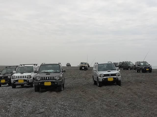 砂浜に入らなくても風で駐車場や道路に砂が溜まってスタックするから遠州で走ってる釣り人の車は殆どジムニーだわ。