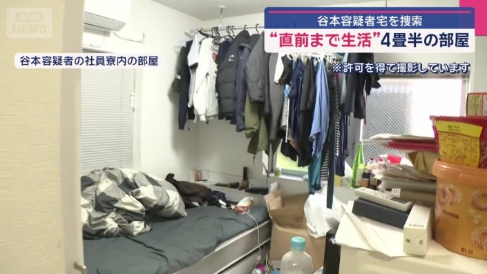 谷本容疑者が住んでいたのは4畳半ほどの部屋。ドライバーとしてつとめていた会社の社員寮です。