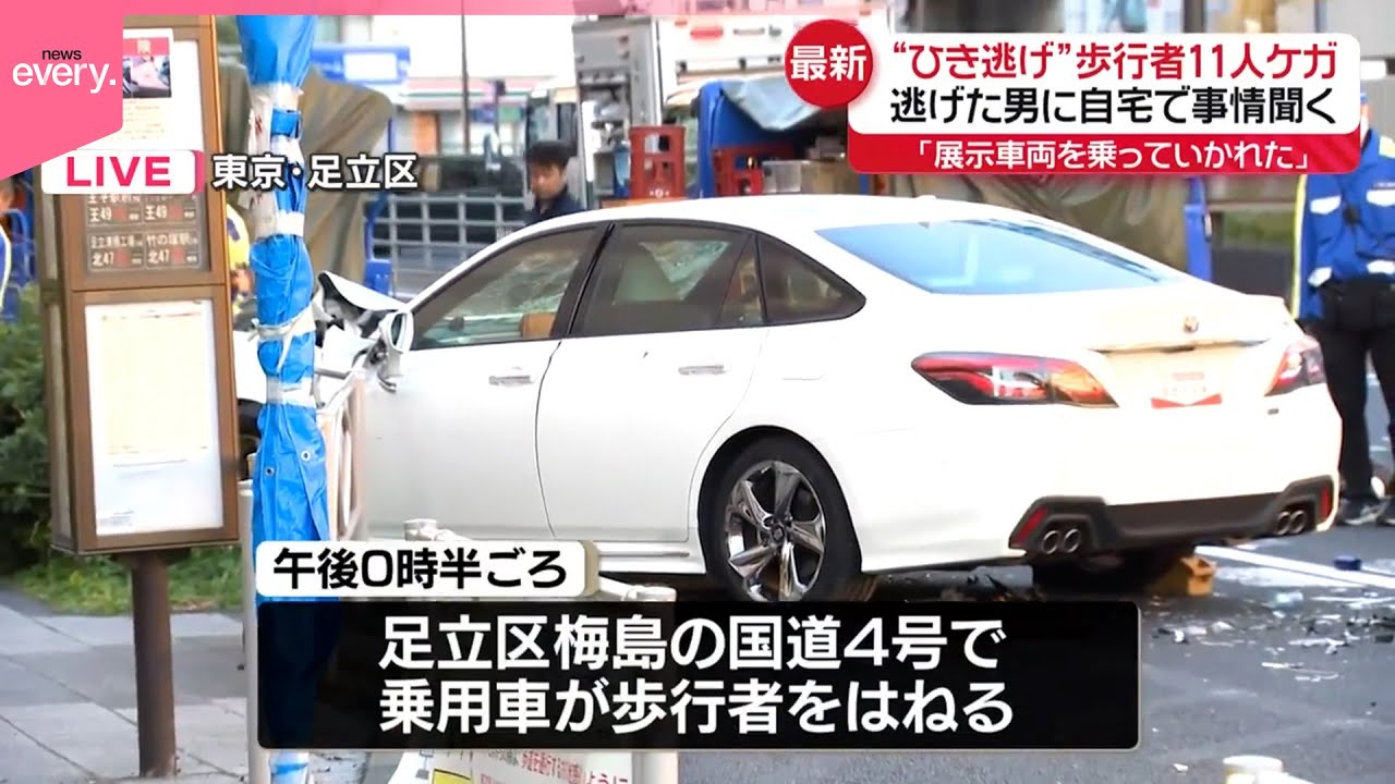 ひき逃げか2人心肺停止、足立区 けが複数、車は盗難疑い