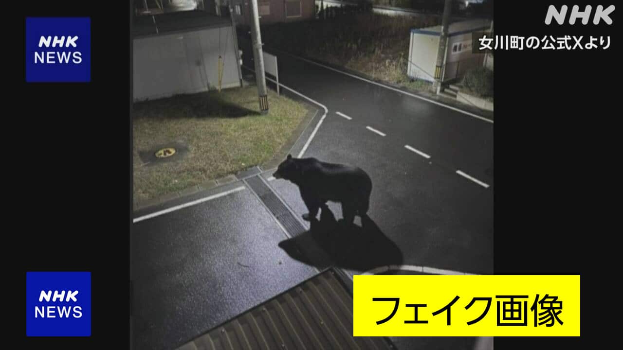 宮城県女川町は26日、前日夜に町内でクマが目撃されたとして公式X(旧Twitter)で注意喚起した投稿について、掲載したクマ画像が「生成AIによるフェイク画像」だったと発表した。さらに、クマの目撃情報自体も事実ではなかったという。