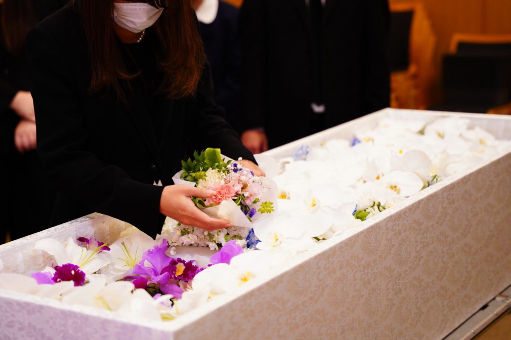 読経が終わり、出棺までの時間に、花に覆われた父のひつぎを囲んで家族十数人でゆっくりと思い出を語り合った。全員で火葬場に行って丁寧に骨を拾った。「1日葬でも、きちんとお別れできた。通夜がない分、母や私たちの疲労が少なく、値段も安かった。私の時もこれでいい」