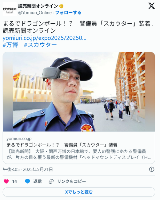 【大阪万博】警備員「スカウター」を装着www
