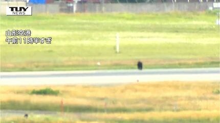 【´・(ェ)・`】山形空港でクマが滑走路を走り回る…体長1.2メートルほど 滑走路終日閉鎖の事態に