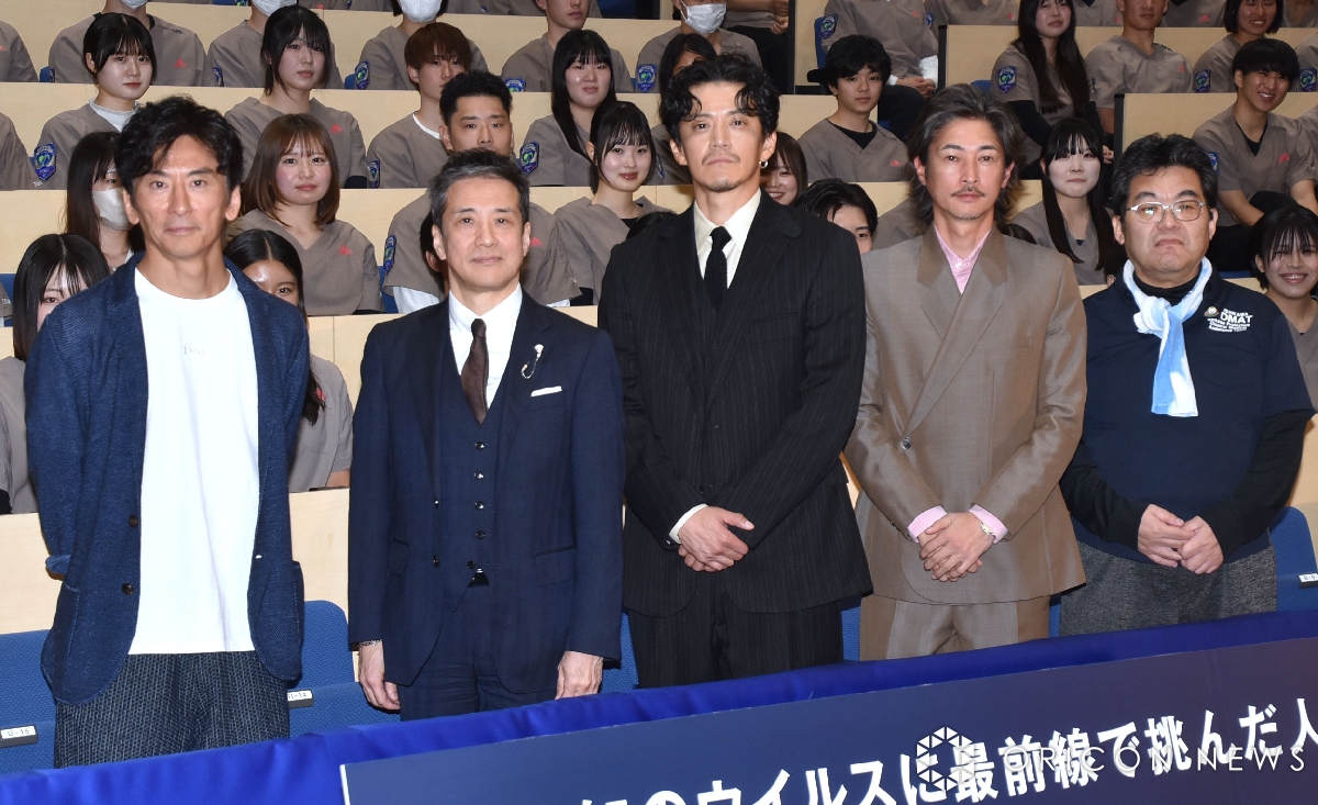 本作は世界的パンデミックを引き起こした新型コロナウイルスを題材に、集団感染が発生した豪華客船ダイヤモンド・プリンセスが横浜港に入港した時点から、乗客全員の下船が完了するまでの日々を事実に基づいて映し出すヒューマンドラマ。この日は、劇中キャラクターのモデルとなった阿南英明医師、近藤久禎医師、脚本とプロデューサーを兼任した増本淳も登壇した。
